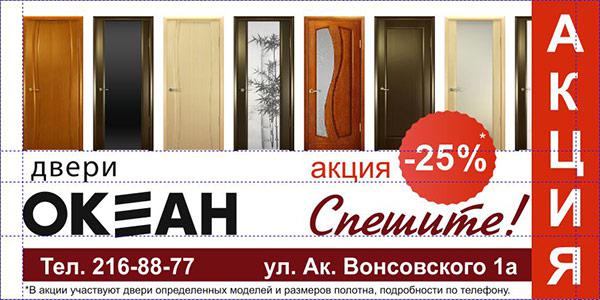 На двери от фабрики «Океан» объявлена скидка 25% в магазине «Уют-Керамика»