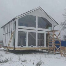 Перечень работ: Фундамент, каркас, утепление, кровля, фасад, гипсокартон, потолок.