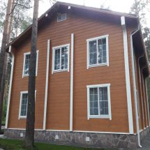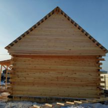 Перечень работ: Сруб по высотным отметкам асимметричный., одна сторона 4,4 м, вторая сторона 5 м. Фронтоны h=2 м.