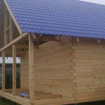 Сроки и объем: Продолжительность работ 2,5 недели. 44 м3 бруса + балки пола, стропила, обрешётка, ветрозащита, проф лист на кровлю.