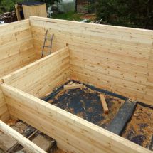 Строительство дома из бруса строганного 200мм. Фундамент ленточный. Забор из проф листа.