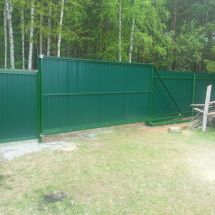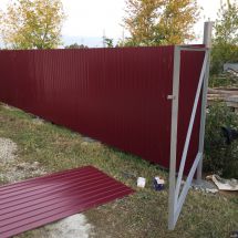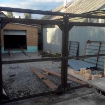 Монтаж ворот из профильной трубы и профлиста, заливка перед воротами.