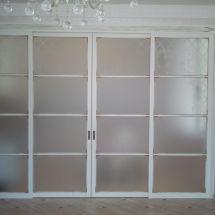 Сначала удаляются наличники, плинтуса, по необходимости, снимается штукатурка. Если требуется сохранить покрытие пола, то его следует защитить матами из картона, матрасов, опилок и иных амортизирующих материалов.