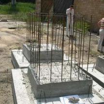 Монолитные столбчатые фундаменты рекомендуется использовать в местности, где уровень грунтовых вод более 1 метра. Под столбы выкапывают ямы или бурят скважины. Столб фундамента должен иметь армирующую обвязку.