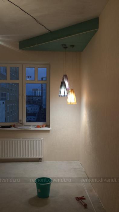 Какие работы были выполнены: Шпатлевка стен, поклейка обоев, монтаж короба из ВГКЛ .