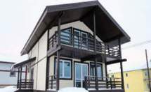 - Каркасно-панельные дома (канадская технология). На деревянный каркас крепятся панели, изготовленные в заводских условиях. По сути это сэндвич – две плиты жёсткого материала – OSB или другого подобного. Между ними лист пенополистирола или иного утеплителя. Если используется пенополистирол, то все элементы сэндвича склеиваются под прессом и получается достаточно жёсткий стеновой элемент. Дома из таких панеолей, как правило, обладают большей конструкционной прочностью, чем обычные каркасники.