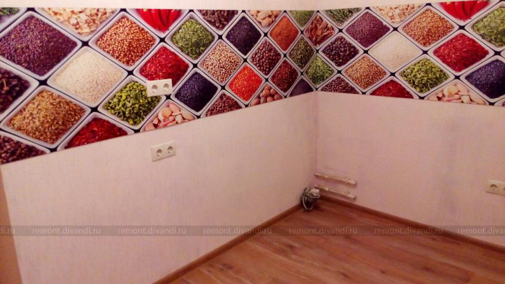 Какие работы были выполнены: Полный ремонт кухни: демонтаж кухонного гарнитура, обоев, линолиума, дверной коробки с вывозом на свалку; частичный ремонт стен штукатуркой, шпатлевание; монтаж кабеля, установка розеток; поклейка обоев; настил ламината и напольного плинтуса; монтаж кухонного фартука МДФ