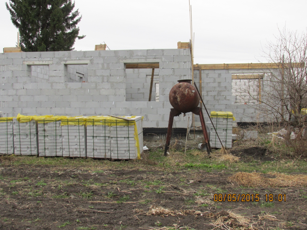 Кладка твинблока (стены, фронтоны, вентканалы) – 44 м3