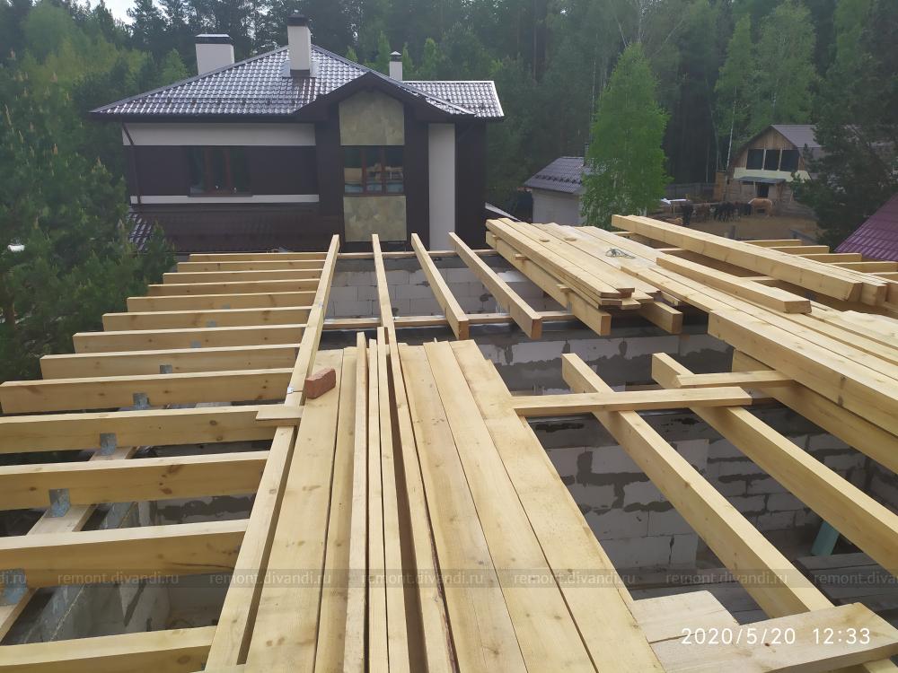 Поднять вальмоаую чердачные холодную крышу металло черипица. дом 96 мкв 8х12 по стенам . Место пос садовый