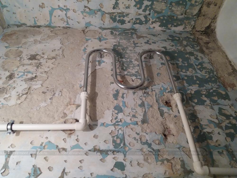 Монтаж теплого пола, монтаж кафельной плитки на стены и пол, экран под ванну из керамической плитки, монтаж разводки от пола под водяной полотенцесушитель, монтаж полотенцесушителя, добавление одной розетки.