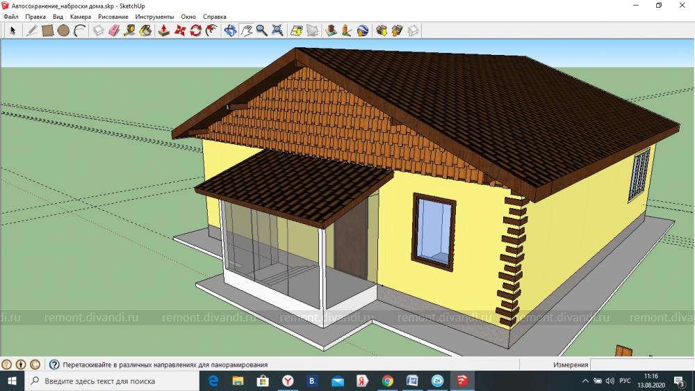 пристройка кухни (ш5 *д2) 10 м2 к каркасному домику