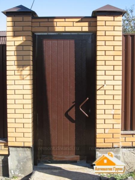Кирпичная кладка стяжка под столбы для уличных металлических дверей.