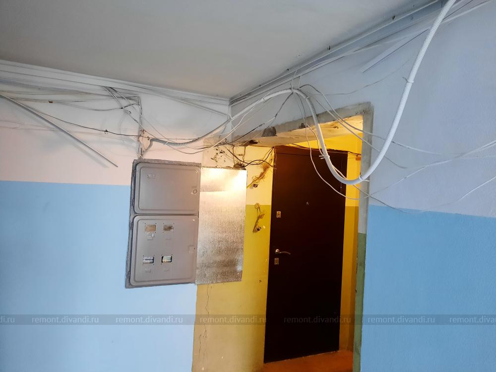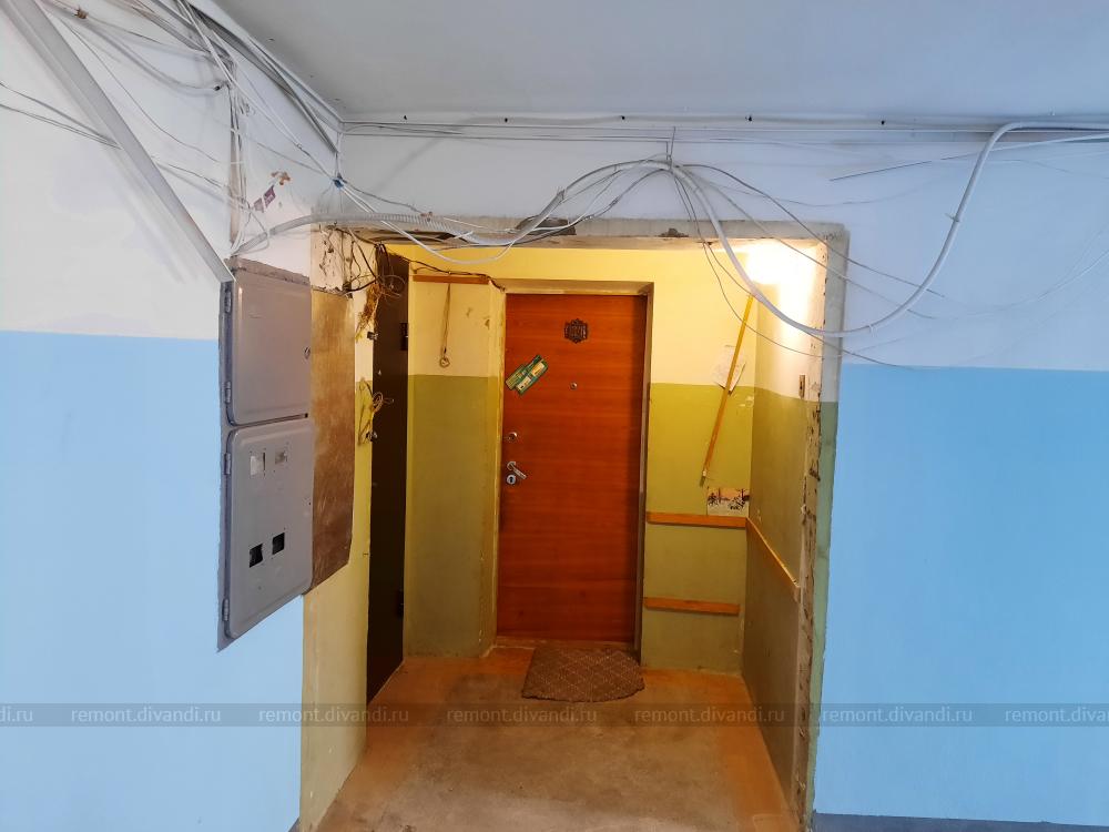 Требуется покрасить стены и потолок в тамбуре (голубой и белый цвета).