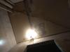 Наклеить плитки ПВХ на потолок (220-151 см^2) и плинтуса, вырезать фигурно под трубы. Перед этим вштробить провод на потолке.
