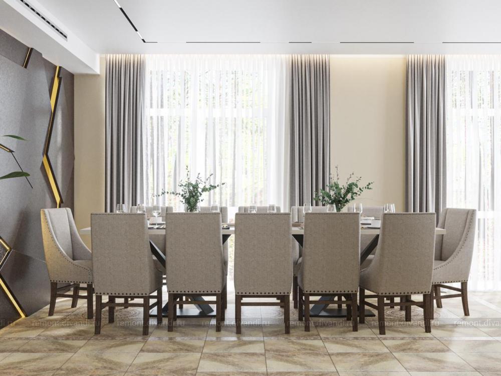 Требуется выполнить отделку столовой и гостиной загородного дома. Дизайн проект есть. Общая площадь ~ 80м2. Расположение - посёлок Рассоха.