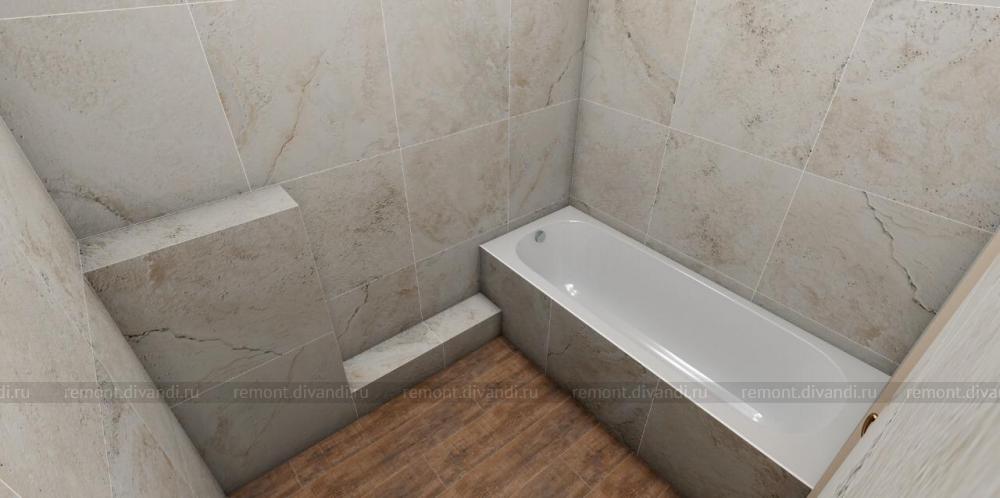 Монтаж теплого пола, монтаж кафельной плитки на стены и пол, экран под ванну из керамической плитки, монтаж разводки от пола под водяной полотенцесушитель, монтаж полотенцесушителя, добавление одной розетки.