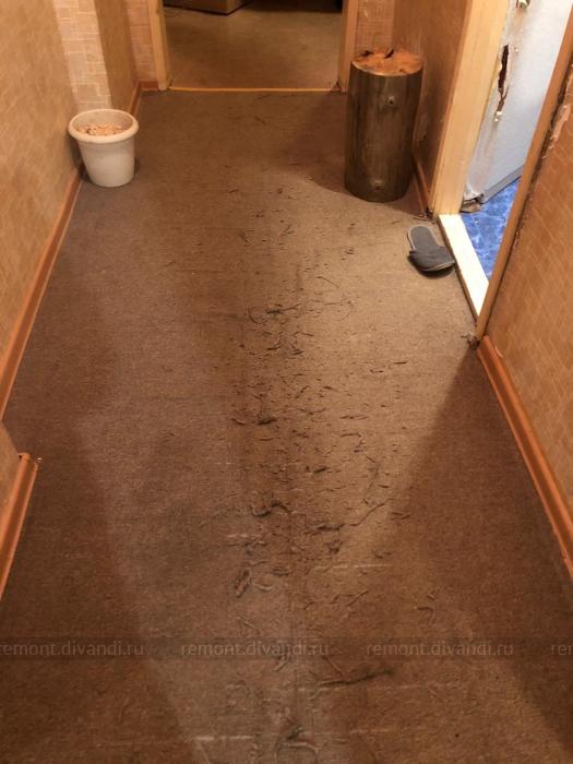 1. поменять напольное покрытие (сейчас на полу ковролин) в комнатах (~20м2 и 17м2) и коридоре (~3м2);