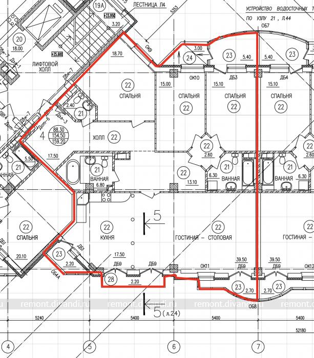 8. Капитальные стены в виде опорных колонн и несущих стен, разделяющих квартиры свободной планировки