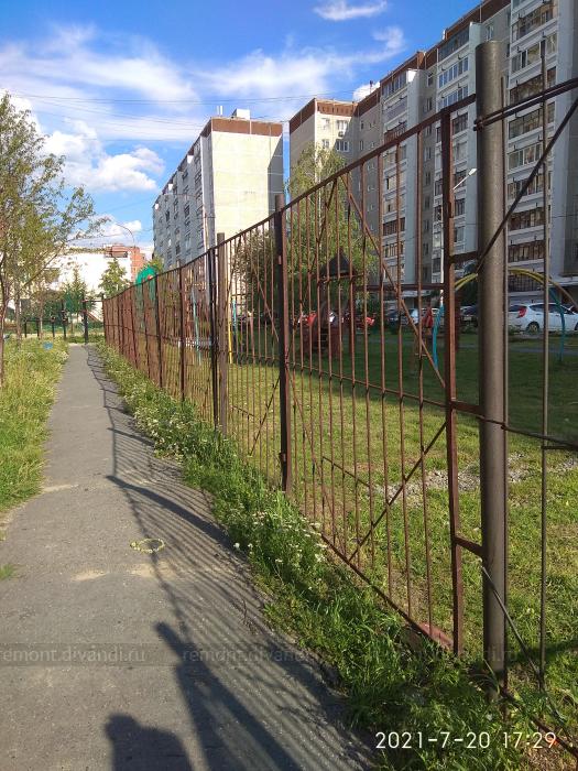 Необходимо окрасить ограждение в светло-серый цвет на два раза