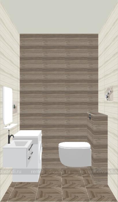 Укладка плитки в двух санузлах 4+2кв.м. по полу. Установка ванны и инсталляции. Высота потолков 3м. Первый су ванна+раковина, второй су инсталляция +раковина. Новостройка. Щорса-Московская. Плитка Уралкафель, размер 250х500.