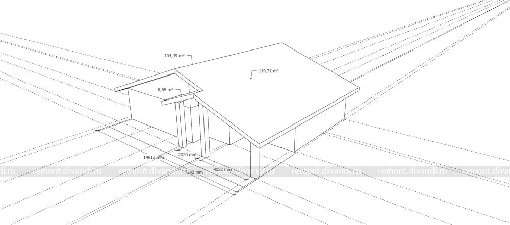 пристройка кухни (ш5 *д2) 10 м2 к каркасному домику