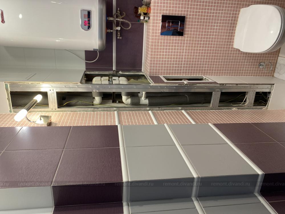 Ремонт ванной комнаты под ключ, демонтаж напольной плитки от застройщика, демонтаж межкомантной двери. Монтаж межкомнатной двери,