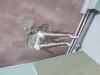 Нужно приклеить остальную плитку на стены, всё углы под углом 45 градусов, установить ванную, унитаз, раковину с тумбой и зеркало-шкаф. Низ ванны обшить плиткой и вырезать дверу для подхода к трубам. Произвести затирка Церезит С40. Установить, смесители в ванной, раковине, установить гигиенический душ и повесить и подключить полотенце-сушитель.