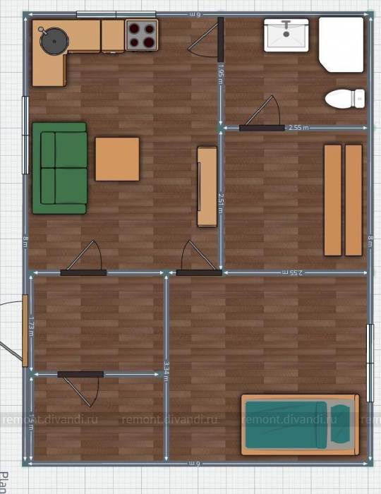 Требуется выполнить строительство одноэтажного сруба из бруса 150х150мм или 200-150мм 6х8м. в соответствии с планировкой. Высота сруба 18-19 рядов. Угловое соединение должно быть выполнено по типу "теплый угол". Внутренние перегородки выполняются в каркасно-щитовом исполнении. Межвенцовый утеплитель, деревянные нагели, крепежные элементы, саморезы, скобы, гвозди звуко-тепло изоляционные материалы для перегородок и прочие расходные материалы в комплектации.
