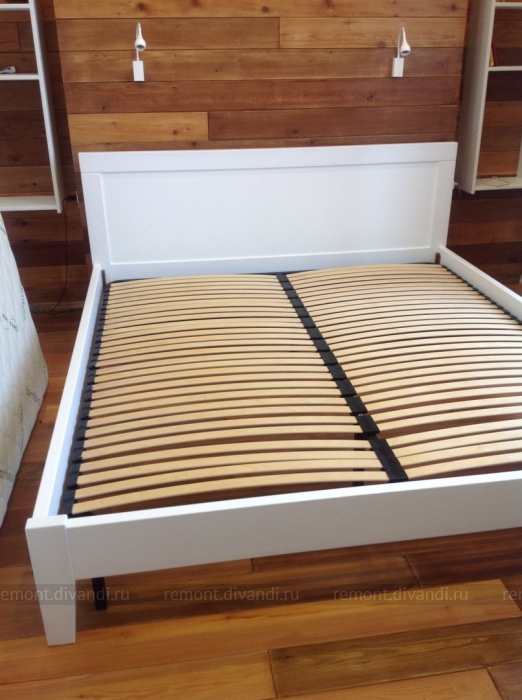 Каркас кровати из массива ясеня, покрытый белой эмалью ( чтобы не просвечивала структура дерева), лаком (не знаю, нужен ли-выслушаю совет). Изголовье можно сделать из мдф. Сумма в пределах 25 тыс.