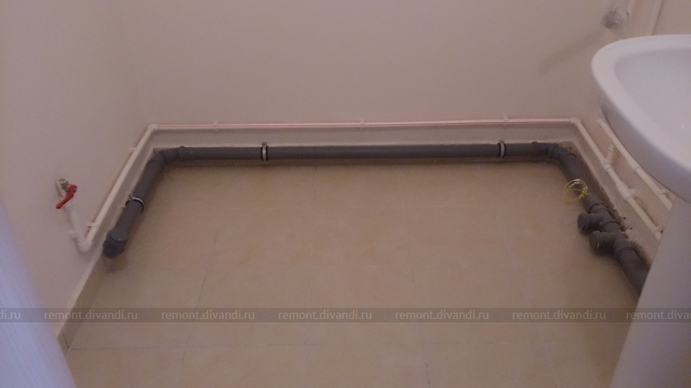 Монтаж теплого пола, монтаж кафельной плитки на стены и пол, экран под ванну из керамической плитки, монтаж разводки от пола под водяной полотенцесушитель, монтаж полотенцесушителя, добавление одной розетки.