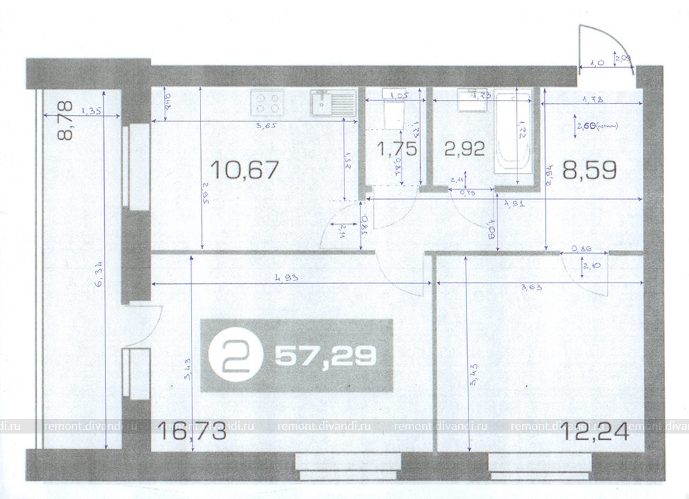 Общая площадь 2-ух комнатной квартиры 57 кв.м. Пожелание по проводимым работам готов обсудить по тел. или при встрече. Период заказа декабрь-январь, срок выполнения работ до 2-ух месяцев.