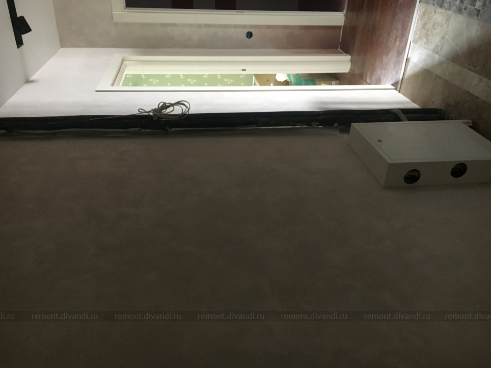 Монтаж теплого пола, монтаж кафельной плитки на стены и пол, экран под ванну из керамической плитки, монтаж разводки от пола под водяной полотенцесушитель, монтаж полотенцесушителя, добавление одной розетки.
