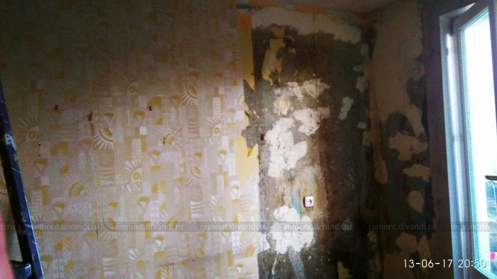 Отделка стен под поклейку обоев 38м2- зачистить-загрунтовать-заштукатурить-зашпатлевать и проштробить под розетку 2м