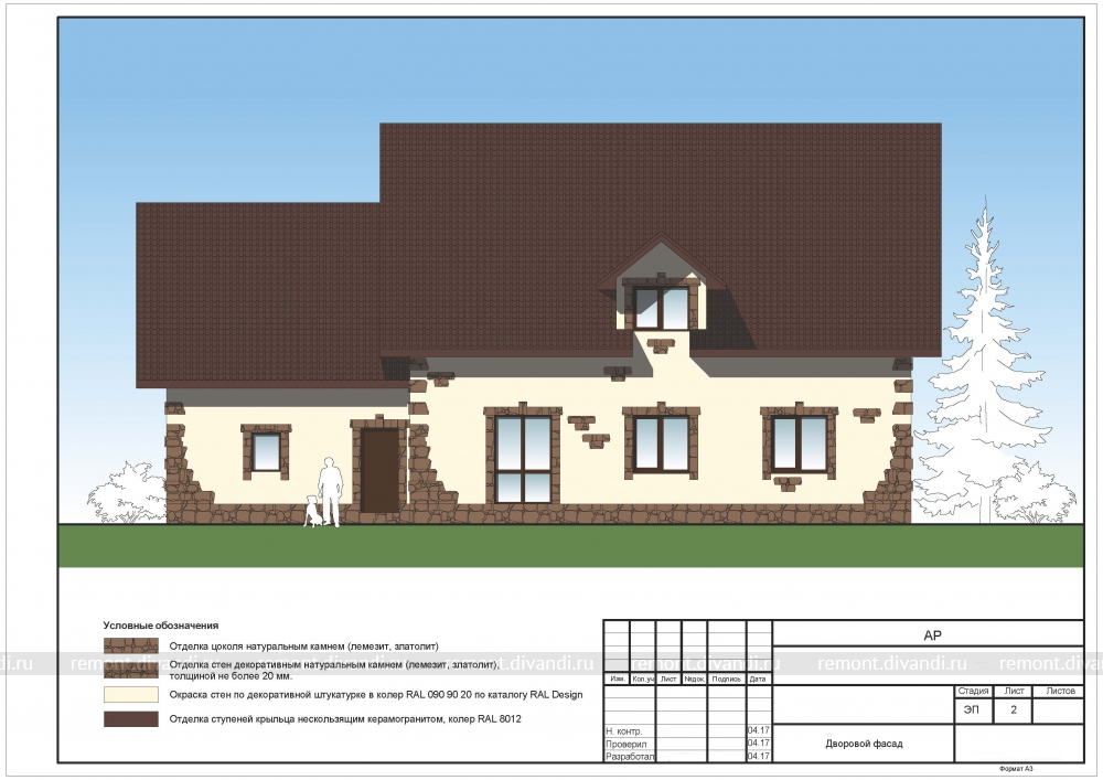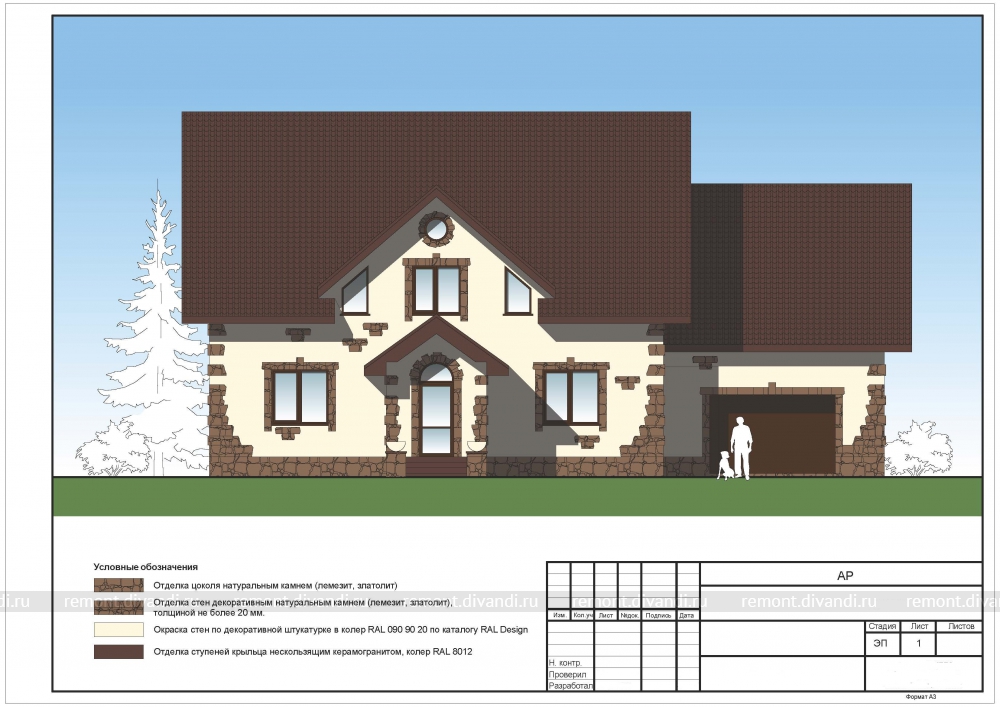 Необходимо выложить природный камень (Лемизит) на цоколь и фасад коттеджа.