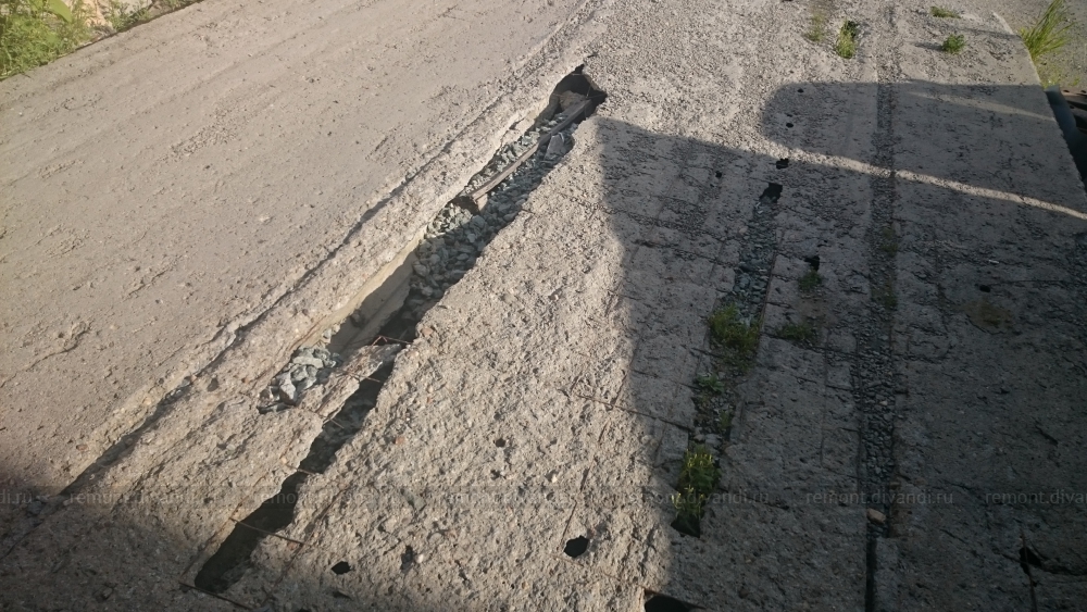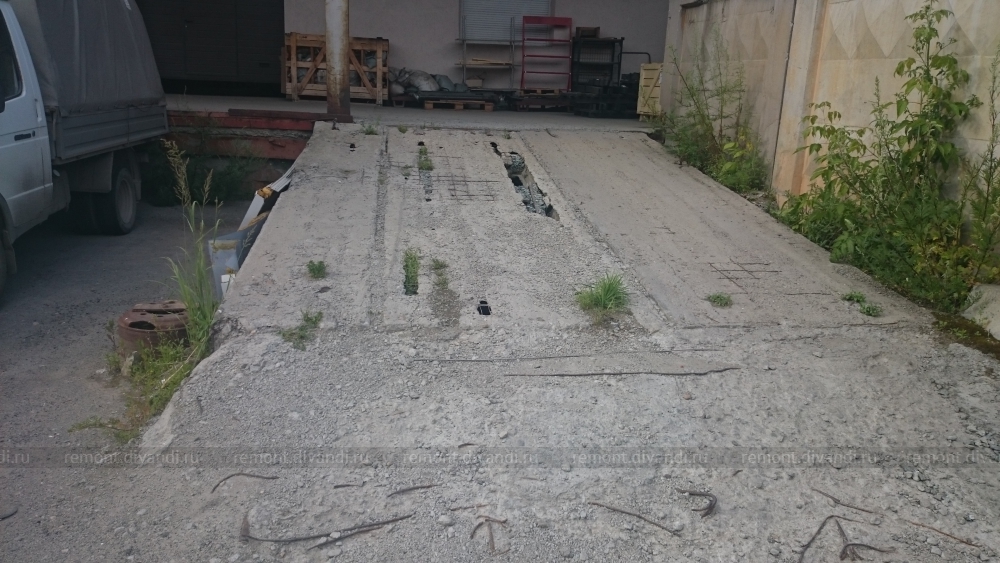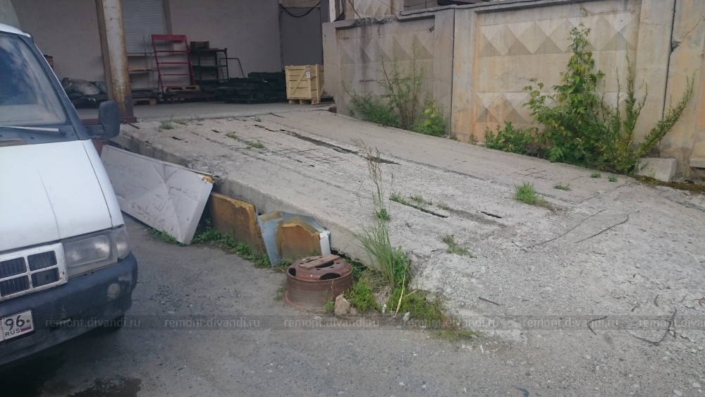 Сейчас здесь лежат 2 плиты перекрытия, которые рассыпаются от времени и осадков. Нужно отремонтировать пандус путем сплошной бетонной плиты либо уложить новые плиты.