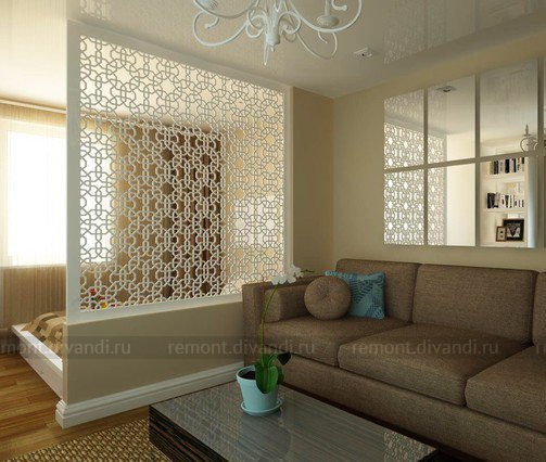 В гостиной с готовым ремонтом необходимо установить декоративную перегородку для ее зонирования. размер перегородки 2,2х2,5 м (шхв), толщина не более 25 см должна получиться. Перегородку хотим либо с декоративной резной вставкой из МДФ, либо со вставками из стекла (фото-примеры есть).