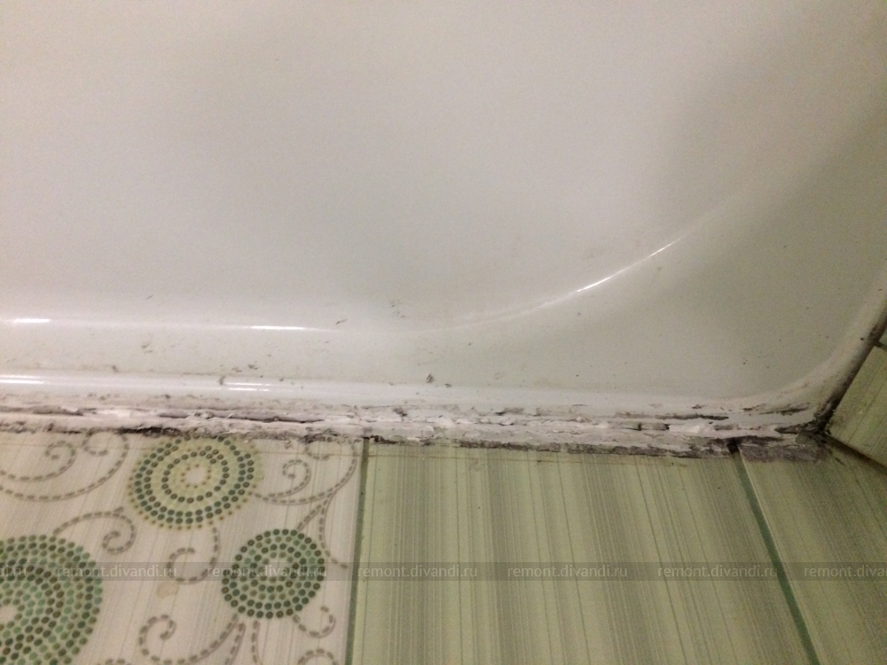 Ремонт стыка стены с ванной. Удаление плесени и силикона.