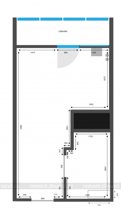 — Ванная (штробление под ХГВ на 60 см)