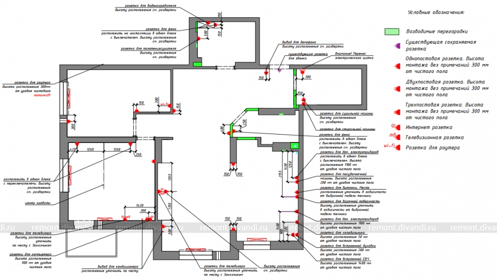 Требуется монтаж электропроводки в соответствии с дизайн-проектом (есть план выключателям, розеткам, светильникам и теплого пола).