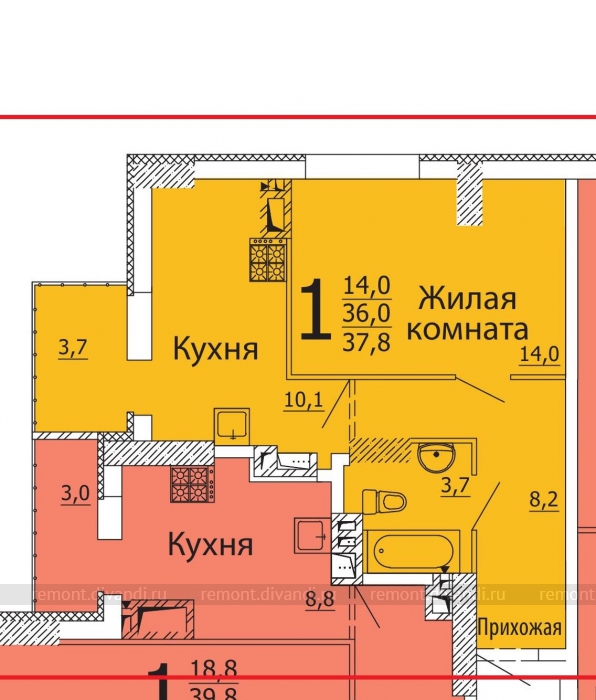 Перепланировка - делаем студию. Потолки натяжные, стены -обои под покраску, пол-ламинат. Дизайн обсудим на месте. Материал наш. Постоянно присутствую на объекте. Сантехнику и электрику делаю сам. Сроки жесткие.