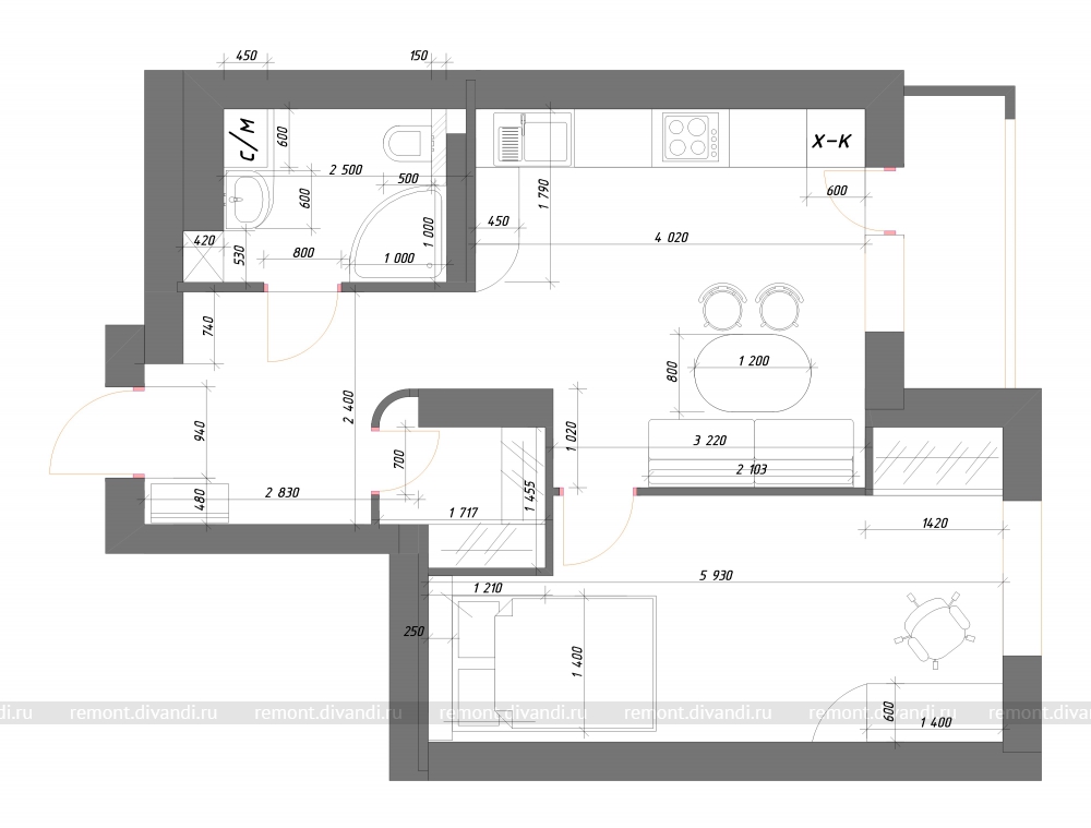 пристройка кухни (ш5 *д2) 10 м2 к каркасному домику