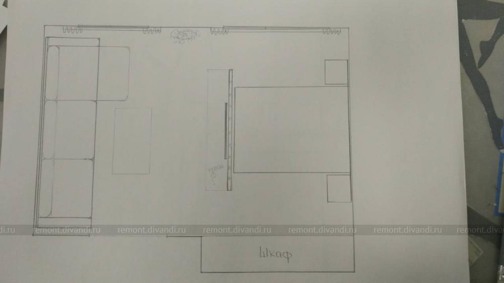 Для этого хотим сделать гипсокартонную перегороду от пола до потолка. С усилениями для того, чтобы повесить телевизор и полки. Также провести туда электричесво и интернет кабели.