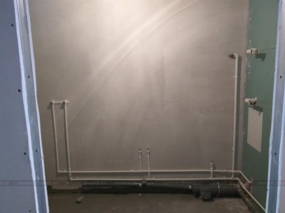 - вывод труб водоснабжения и канализации к ванной и тумбе с мойкой