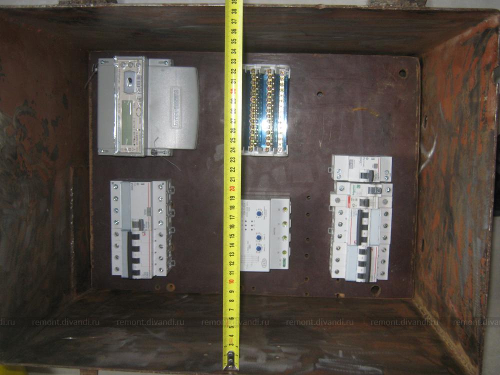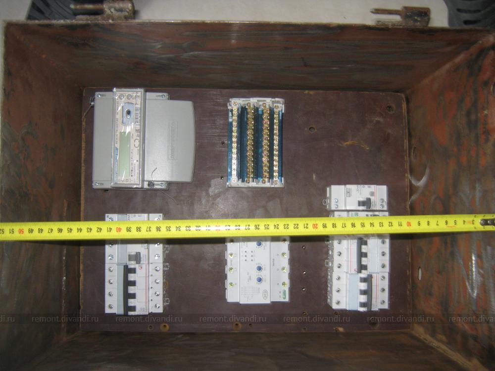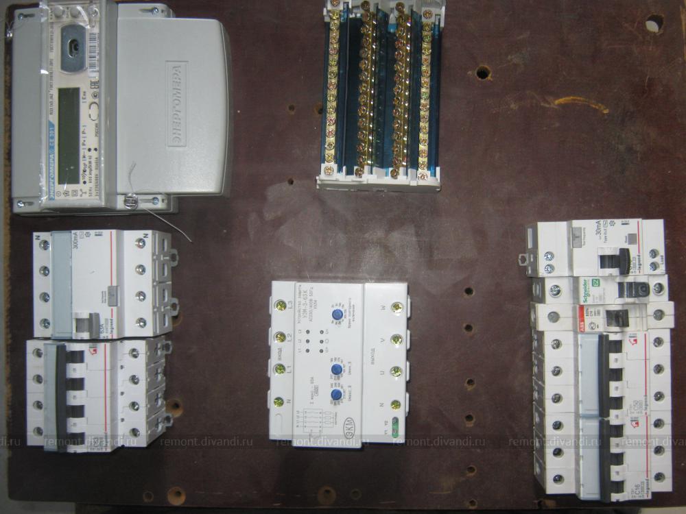 Собрать силовой эл. щит. Щит нестандартной формы (см фото), в качестве монтажной панели используется текстолитовая плита 12 мм. Компоновка эл. щита вводной автомат 63 А, узо на 63 А, прибор учета, узм-3-63к устройство защиты.