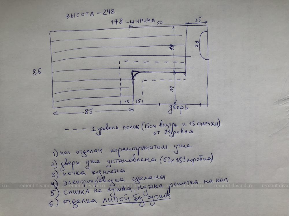 Добрый день, подскажите сколько будет стоить сделать мини-сауну по эскизу. Прошу отдельно выделить стоимость работ и материалов. Отделка липой без сучков. Дверь установлена, печка куплена, сделан пол и электропроводка. Высота в чисте 220