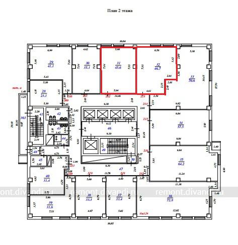 Офис в БЦ ФМ , ул. Фурманова, 126, площадь 46.7 м2, выделен красным справа,