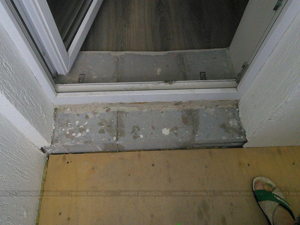 Поднять пол на балконе, облагородить порог, заделать люк.