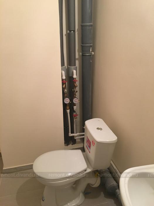 Плитка на стены, монтаж короба, установка ванны, установка шкафчика для умывальника, установка полотенцесушителя, подключение стиральной машины.