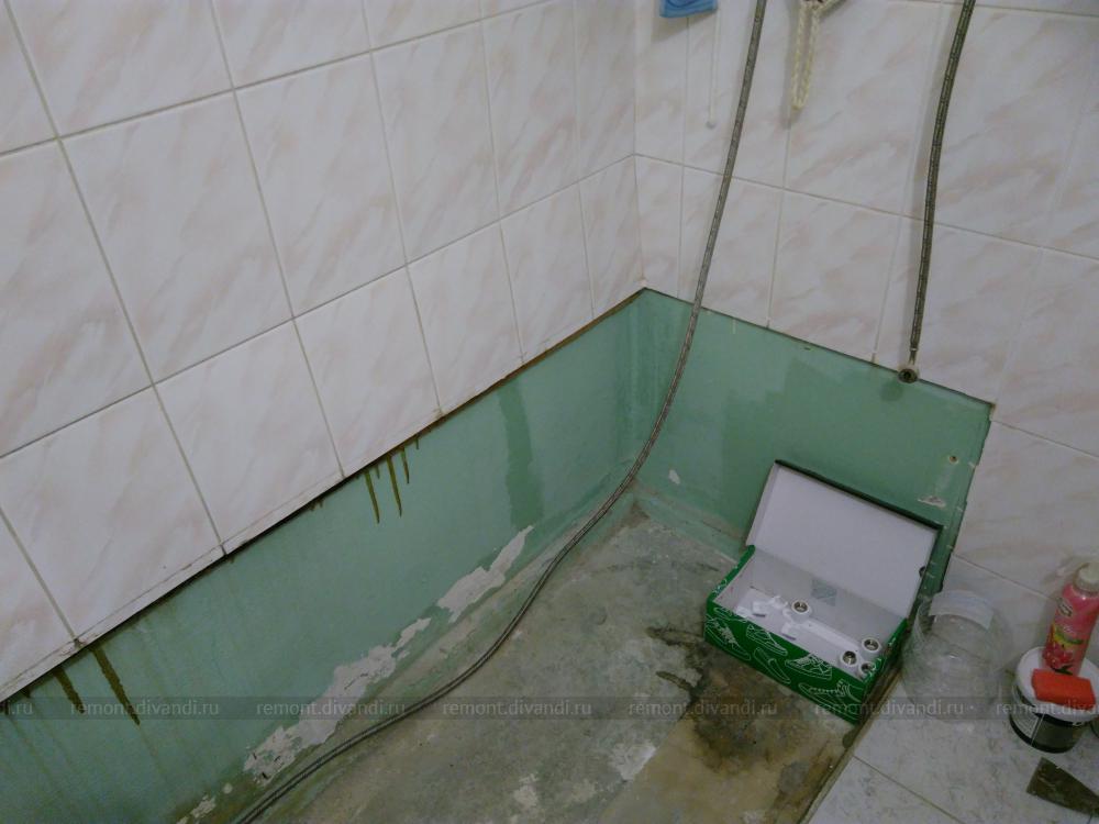 ТСЖ меняло стояки (полипропилен)до счётчиков.Продолжить полипропилен после счётчиков без штробления открытым способом .Сделать короб легко разборный из пластиковых панелей(раньше был из ГВЛ+кафельная плитка).Установить новую акриловую ванну.Сделать примыкание к ванной из мозаики высотой 150мм. так-как новая ванна выше старой и целая плитка от борта вверх не влезет.