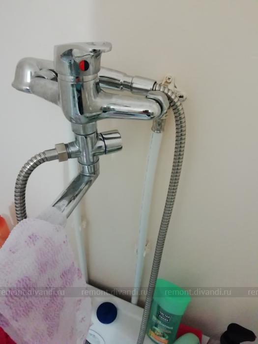 Укладка плитки на стены, комбинировать с покраской, установка сантехники (душ и смеситель) экран под ванну, облицовка экрана плиткой.